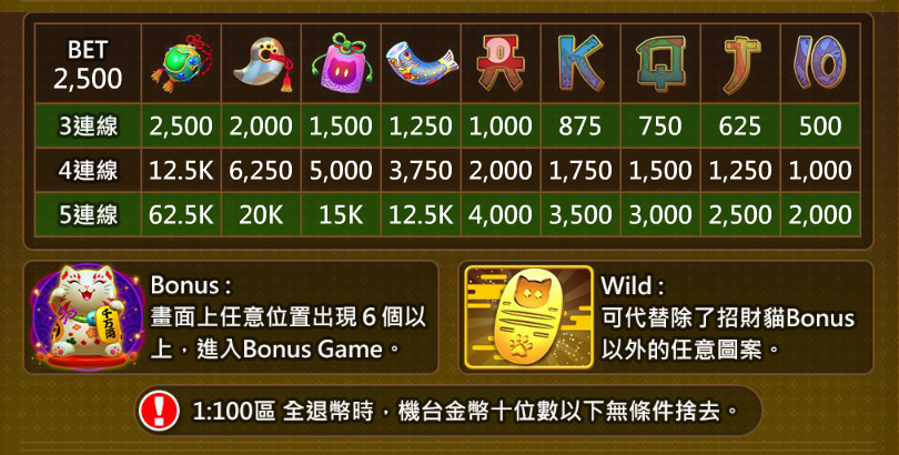 《招財貓》賠率表