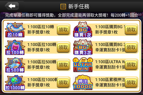手機版玩家限定,完成8個「新手任務」即送1,000金幣! |
