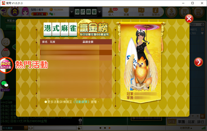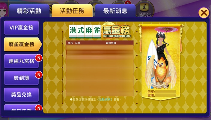 | 【麻雀贏金榜】每天第一名獎勵 |