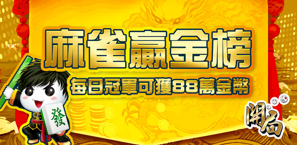 慶祝《開局》13週年!在活動期間,於《港式麻雀》金幣區每天累積贏得最多金幣的玩家,將可登上當天的「麻雀贏金榜」!贏金榜每天第一名玩家,可贏得88萬金幣!